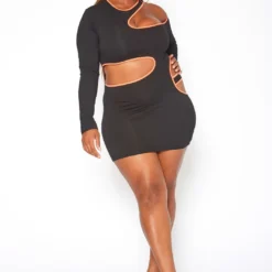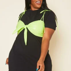 Plus Size Neon Trim Cut Out Bodycon Mini Dress