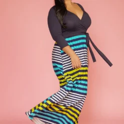Plus Size Multi Striped Asymmetric Maxi Dress