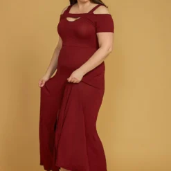 Asoph Plus Size Keyhole Front Slit Hem Maxi Dress