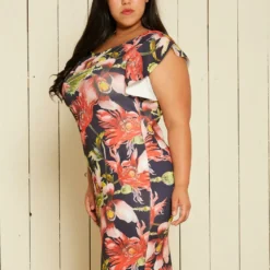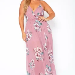 Asoph Plus Size Floral Print Cross Lace Back Maxi Dress