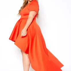 Asoph Plus Size Flattering Orange High Low Maxi Dress