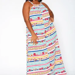 Asoph Plus Size Floral Striped Maxi Flare Dress