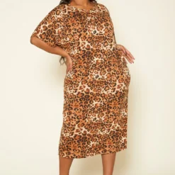 Asoph Plus Size Leapord Print Midi Lounge Dress With Headscarf