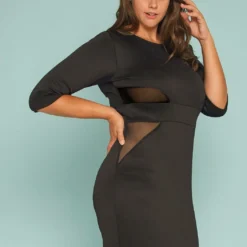 Asoph Plus Size Mesh Inset Bodycon Dress