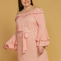 Asoph Plus Size Off Shoulder Stripe Mini Dress