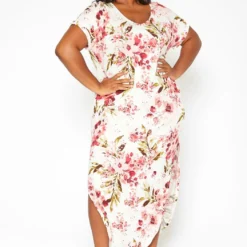 Asoph Plus Size Spring Floral Print Tee Shirt Maxi Dress