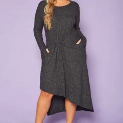 Plus Size Asymmetric Long Sleeve Midi Dress