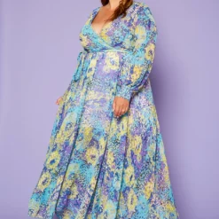 Plus Size Abstract Floral Pattern High Low Maxi Dress