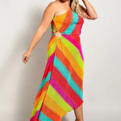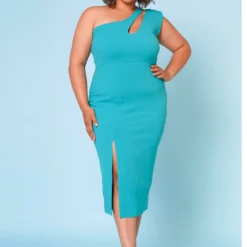 Plus Size Asymmetric One Sleeve Cocktail Midi Dress