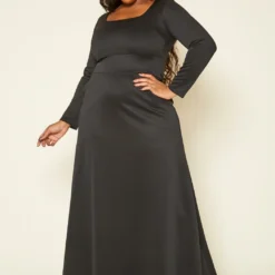 Plus Size Classic Square Neck Long Sleeve Maxi Dress