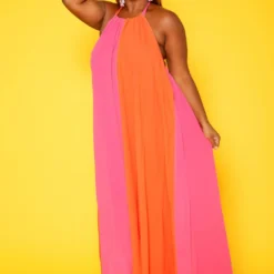 Plus Size Colorful Aura Cowl Neck Maxi Dress