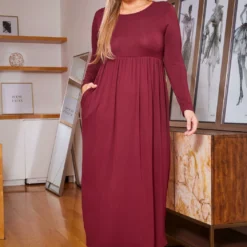 Plus Size Basic Long Sleeve Fit & Flare Maxi Dress