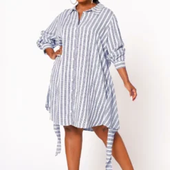 Nurode Plus Size Lace Trim Wrapped Shirt Dress