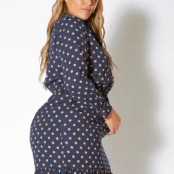Pleione Plus Size Polka Dot Tie Neck Dress