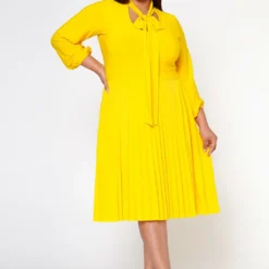 Plus Size Bow Collar Pleated Fit & Flare Dress