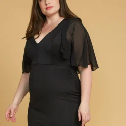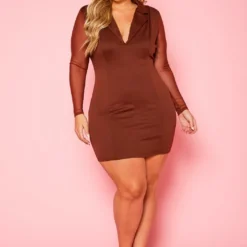 Plus Size Collared Bodycon Dress With Mesh Sleeves