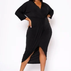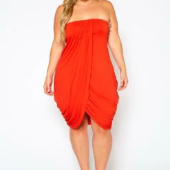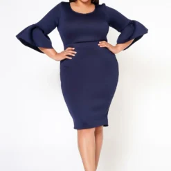 Plus Size Front Collar Tie Bodycon Midi Dress