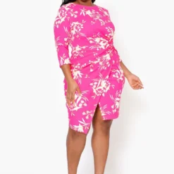 Plus Size Floral Print Twist Hem Cocktail Dress