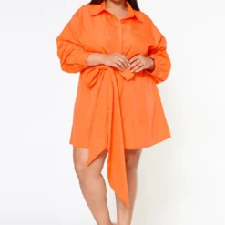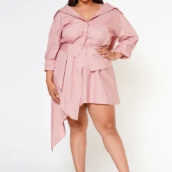 Plus Size Button Front Collar Neck Satin Mini Dress