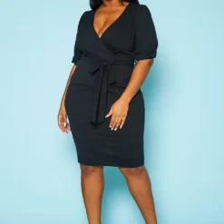 Plus Size V Neck Wrap Bodycon Mini Dress