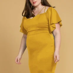 Plus Size Strappy Bell Sleeve Cocktail Dress