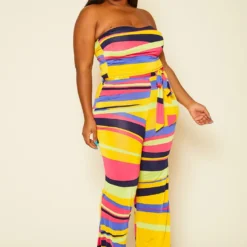 Plus Size Abstract Color Print Mix Jumpsuit