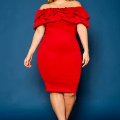 Plus Size Off Shoulder Ruffle Hem Dress