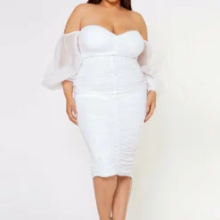 Plus Size Romantic Off Shoulder Ruched Midi Dress
