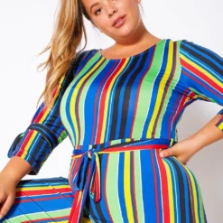 Asoph Curvy Womens Over The Rainbow Striped Jumpsuit