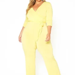Asoph Plus Size Fancy V Neck Flare Jumpsuit