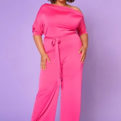 Asoph Plus Size Cold Shoulder Straight Leg Jumpsuit