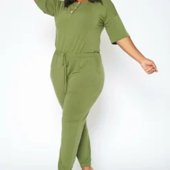 Asoph Plus Size Casual Button Hem Jumpsuit