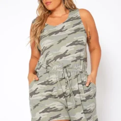Asoph Plus Size Camo Print Thermal Knit Romper