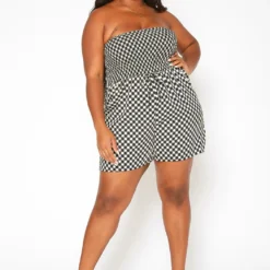 Asoph Plus Size Checker Dotted Print Tube Romper