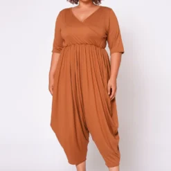 Plus Size Solid Long Sleeve Fitted Jumpsuit
