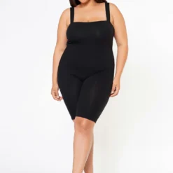 Plus Size Sleeveless Mesh Accent Romper With Cape Hem