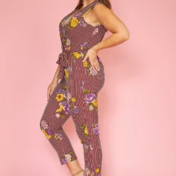 Asoph Plus Size Floral Stripe Sleeveless Cropped Jumpsuit