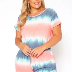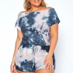 Asoph Plus Size Home Lounge Tie Dye Romper