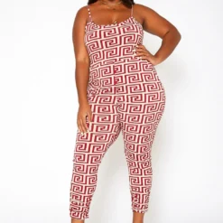 Asoph Plus Size Greek Key Print Cami Jumpsuit