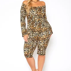 Asoph Plus Size Leopard Print Off Shoulder Romper