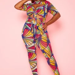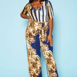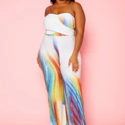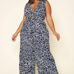 Plus Size Abstract Print Wide Flare Jumpsuit