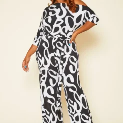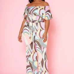 Plus Size Abstract Pattern Off Shoulder Jumpsuit
