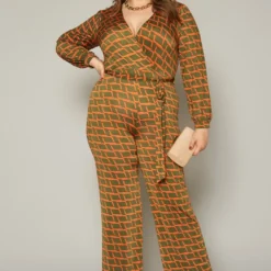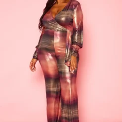 Plus Size Gradient Pattern Metallic Jumpsuit