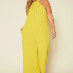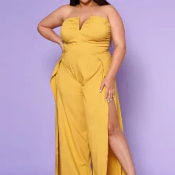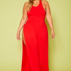 Plus Size Halter Top Wide Leg Slit Jumpsuit