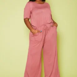 Plus Size Keyhole Front Flare Leg Jumpsuit