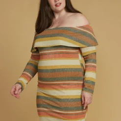 Asoph Plus Size Stripe Ribbed Midi Dress