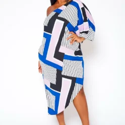 Plus Size Asymmetric Long Sleeve Midi Dress