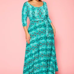 Plus Size Snake Print Fit & Flare Maxi Dress