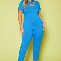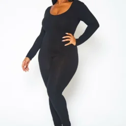 Plus Size Solid Long Sleeve Fitted Jumpsuit