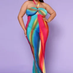 Plus Size Sunset Views Multi Print Tube Maxi Dress